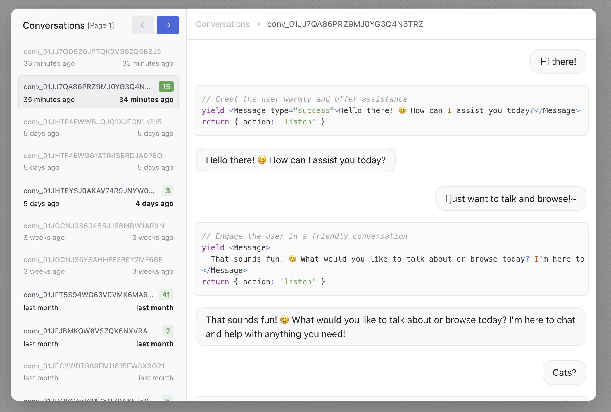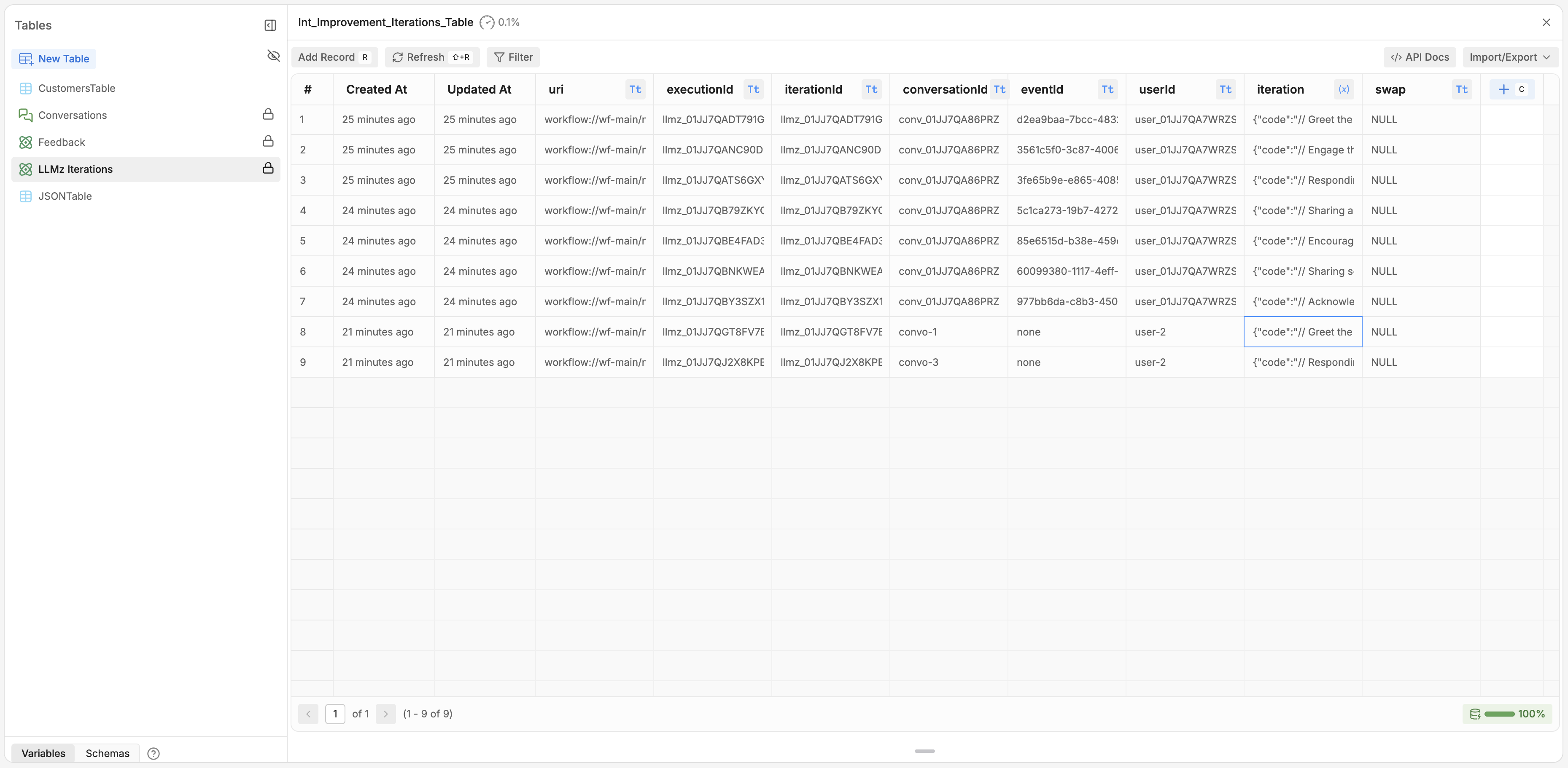 After installing the integration, all of the iterations produced by LLMz via an Autonomous Node will be stored in the automatically-created “LLMz iterations” Table. Iterations are produced at the message level, meaning a single conversation will typically have multiple iterations.