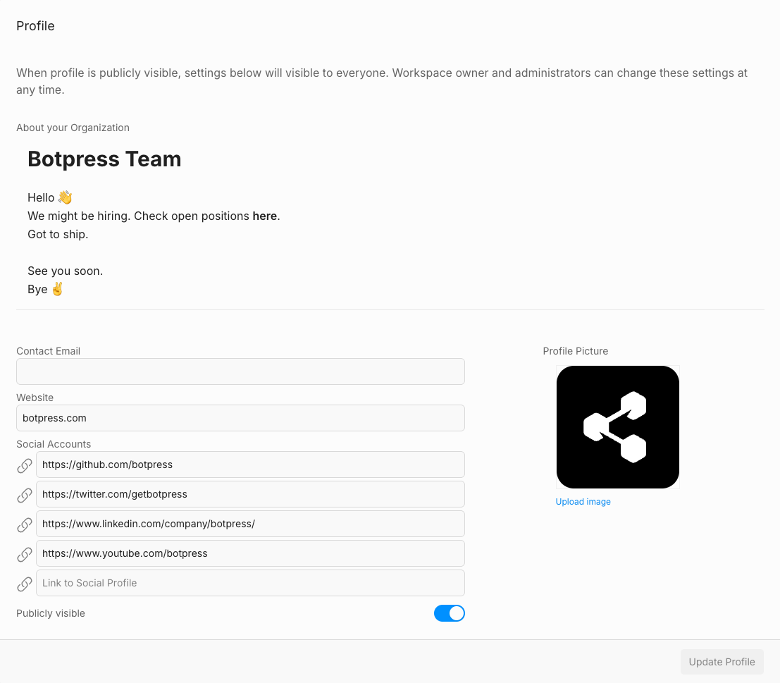 - Update your profile on Botpress.