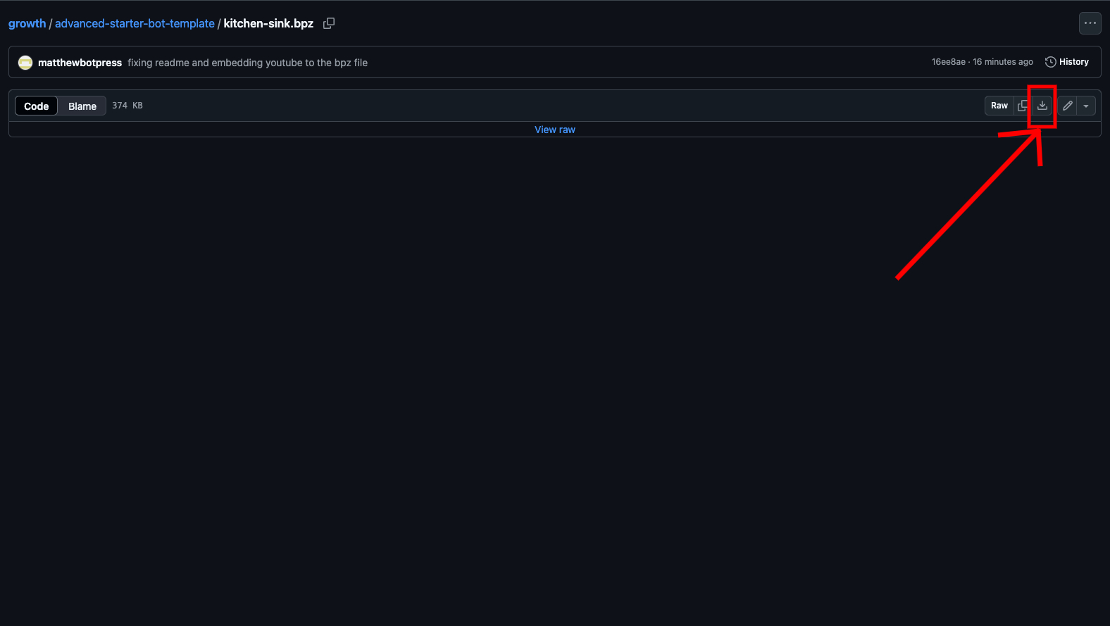 - Go to the Advanced Starter Template located on the Botpress Growth Team’s GitHub!